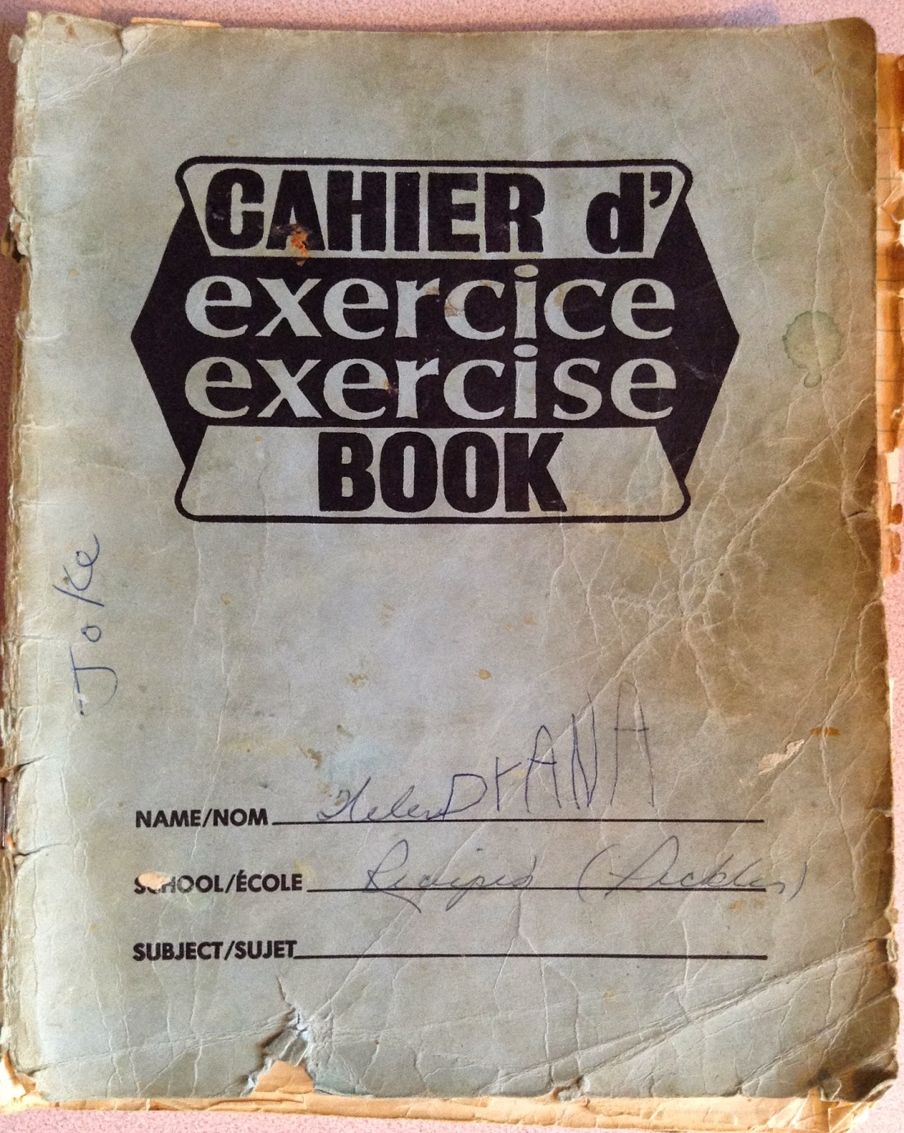 On the inside cover is a recipe for Baby Formula and throughout the exercise book are scribbles from my daughter; near the back my sister had written out and tested baby names (she decided on Logan for a boy); and a recipe for Tia Maria that reminds me of being a teen and drinking WAY too much of the homestyle brew while my mom was gone to work. :)